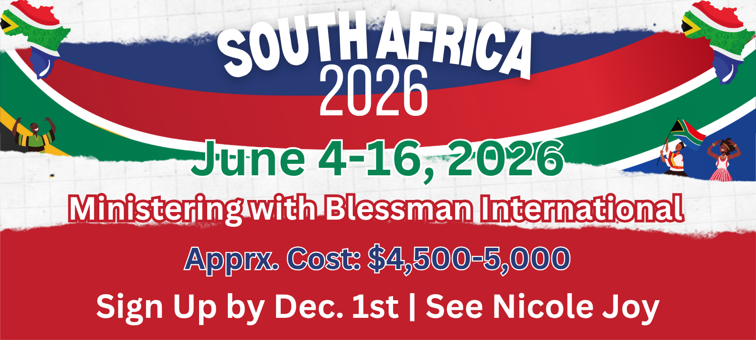 Anyone 16 or older don’t miss this life changing opportunity to minister in South Africa June 4-16, 2026. We will have the opportunity to help with a feeding program, an eye glass clinic, shoe giveaway and so much more.