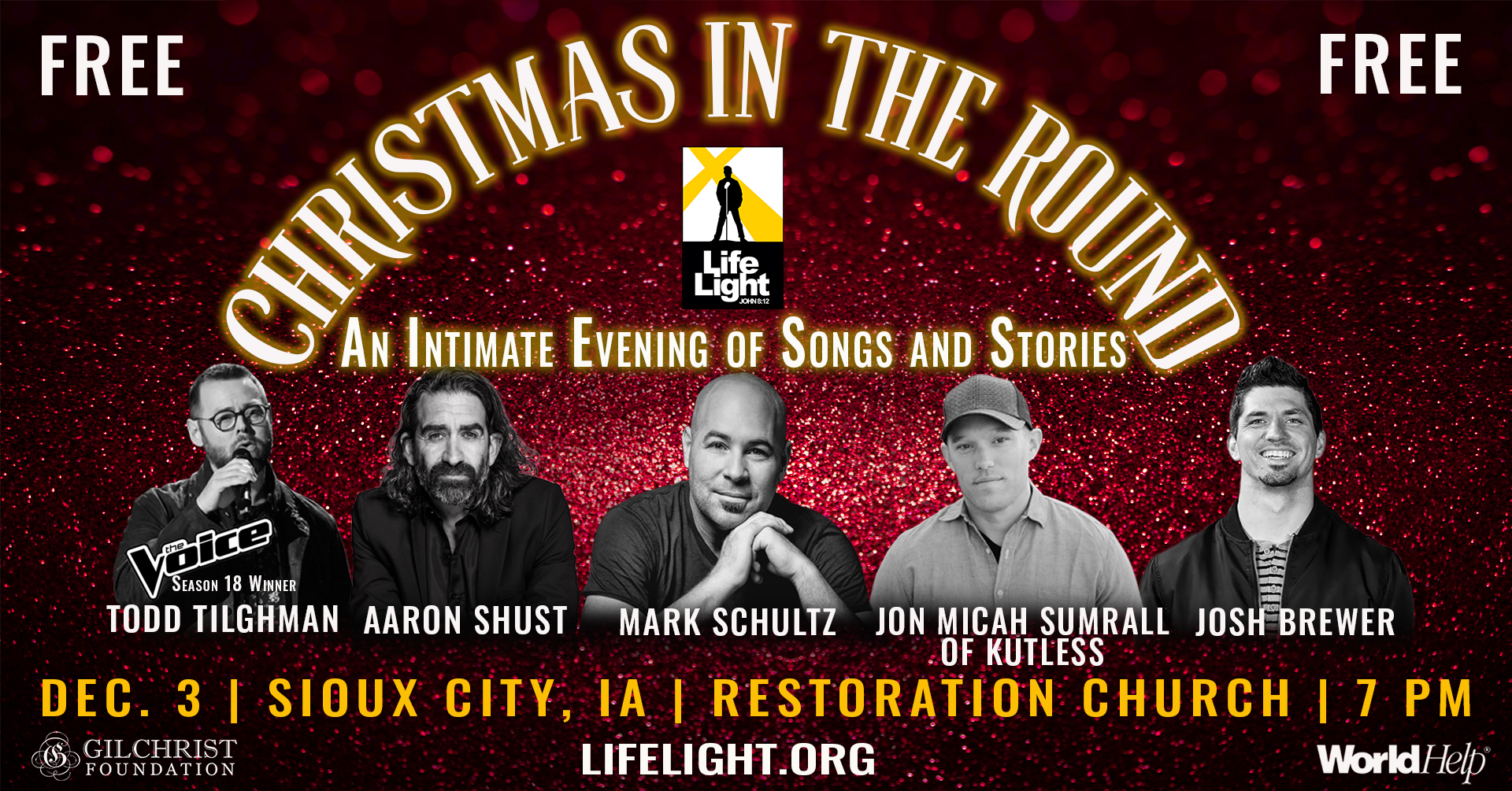 Wednesday, December 3rd @ 7pm Life Light presents Christmas in the Round, An Evening of Songs & Stories here at Restoration Church.